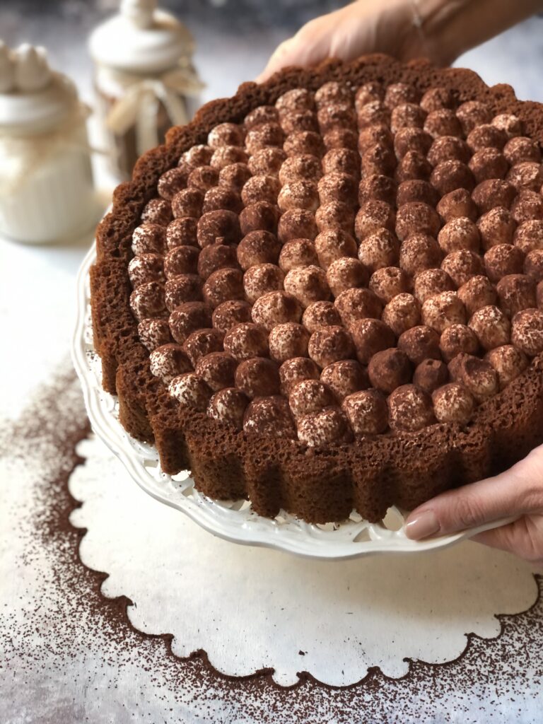 -Prendete la crostata ormai ben fredda, bagnatela con la bagna a base di caffè.