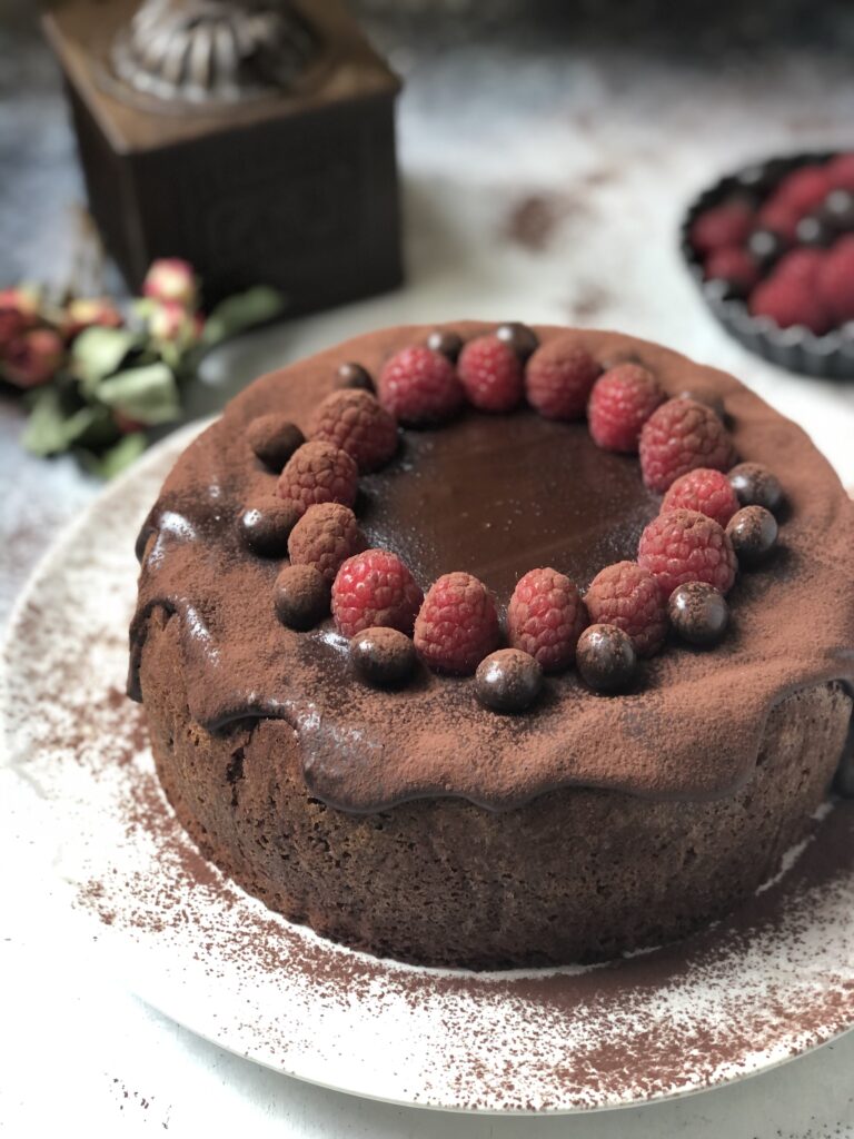 Una torta che possiamo definire, per gli ingredienti, un tiramisù. Un dolce al caffè dal cuore morbido di ricotta e mascarpone che conquista per il gusto delicato e poi la glassa al cioccolato fondente amaro che crea il giusto contrasto e poi i frutti rossi, i lamponi con la nota acidula e quelle perle di chicchi di caffè ricoperti di cioccolato.